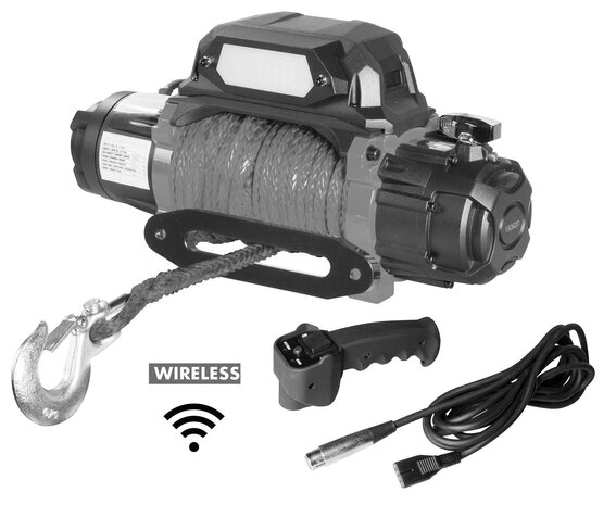 Verricello 24V 5443 kg cavo sintetico 26m telecomando senza fili